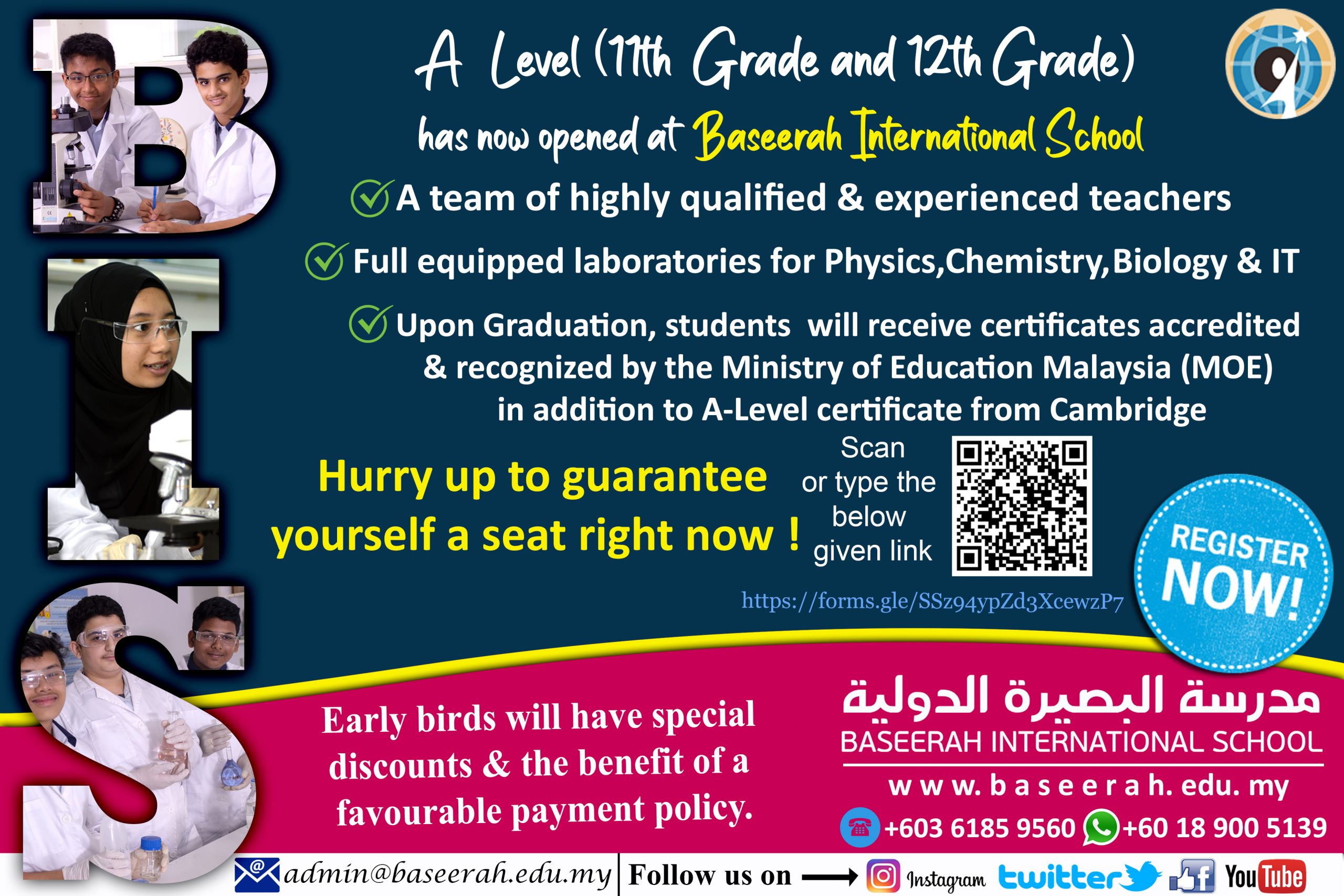 A Level (11th Grade & 12th Grade) has now opened at Baseerah International School. Register Now ! Just Click on the picture & register yourself.BISadminJuly 1, 2020Uncategorized Previous Post Baseerah International School I Sport Day Next Post KG to G10 starting from 10th of August 2020. Registration still open !